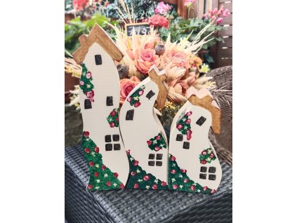 Dřevěné roztančené domky, krásná dekorace pro váš domov Výška Velký 29 cm Střední 22,5cm Malý 18,5 cm