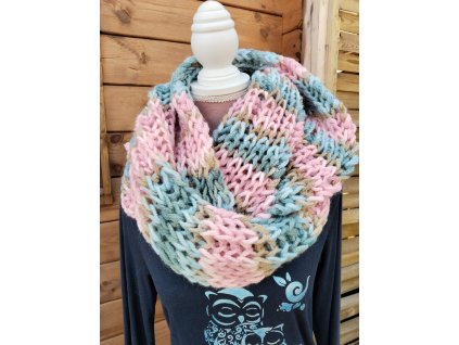 Originální ručně pletený nákrčník z velmi příjemného materiálu. Složení 25%vlna, 75% akryl, nákrčník lze 2x otočit, nekousavá příze