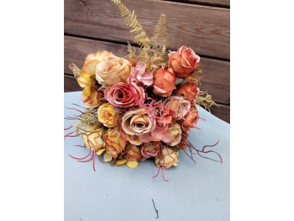 Podzimní kytice z látkových a umělých květin, délka cca 30 cm