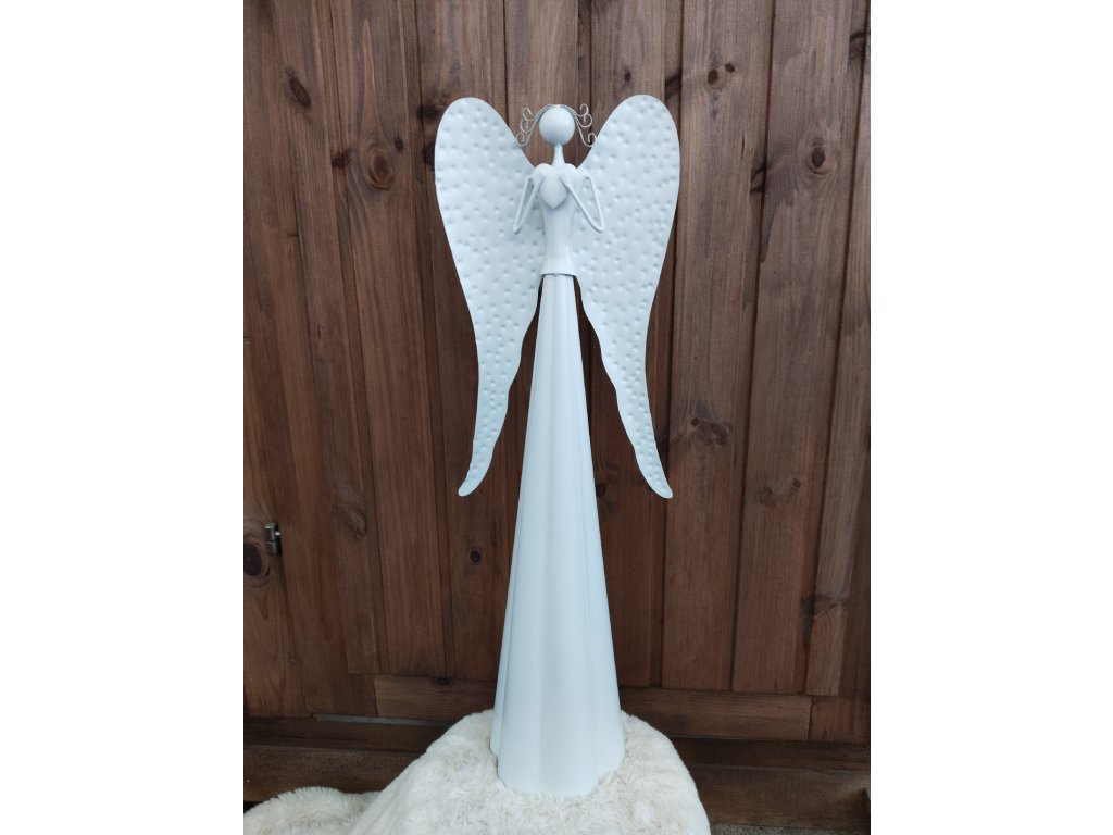 Kovová Andělka v bílé se srdíčkem, výška 62 vm