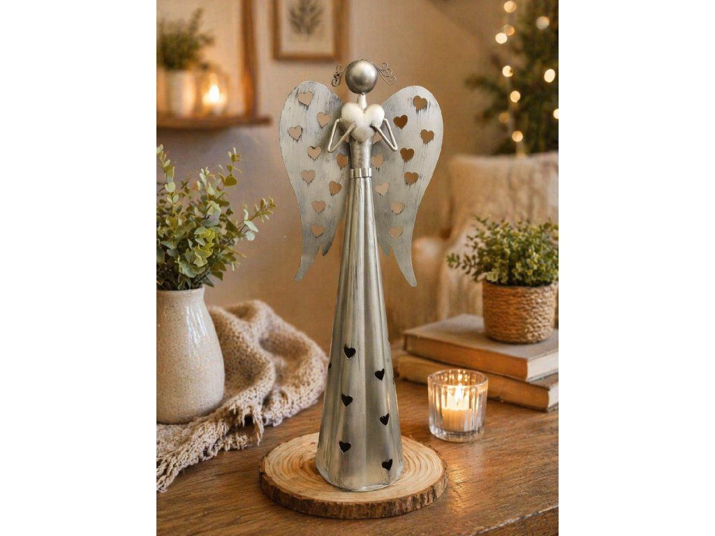 Kovový anděl se srdíčkem, svícen