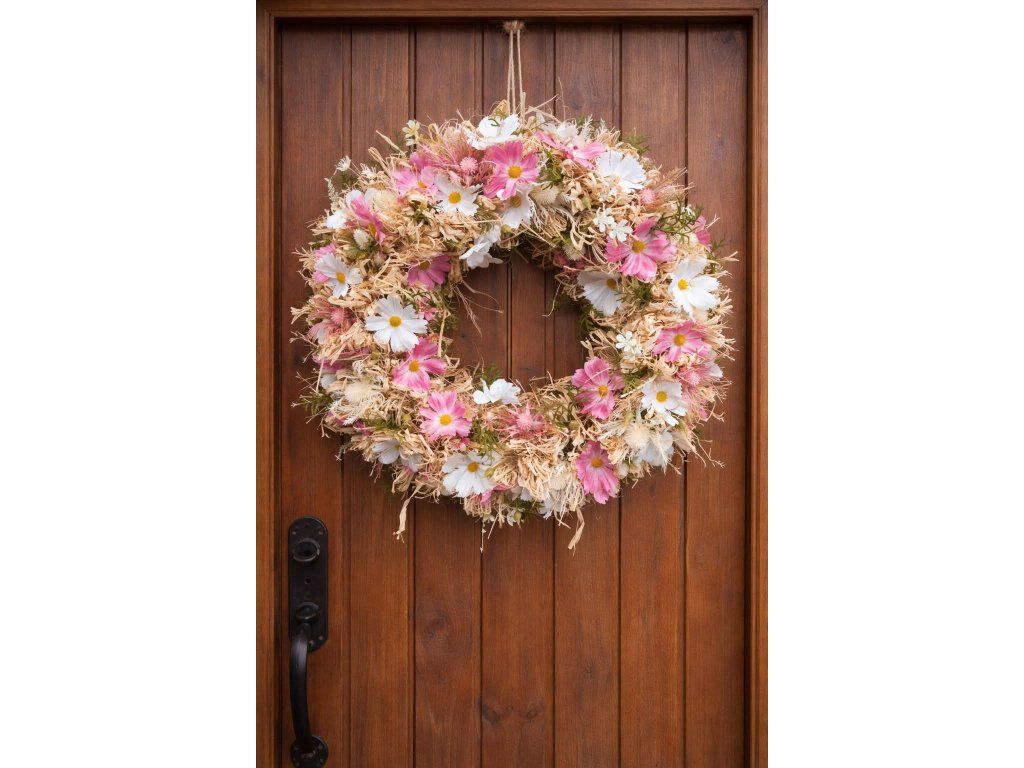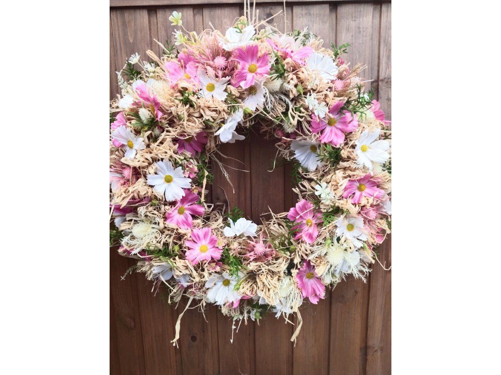 Celoroční věnec do růžova