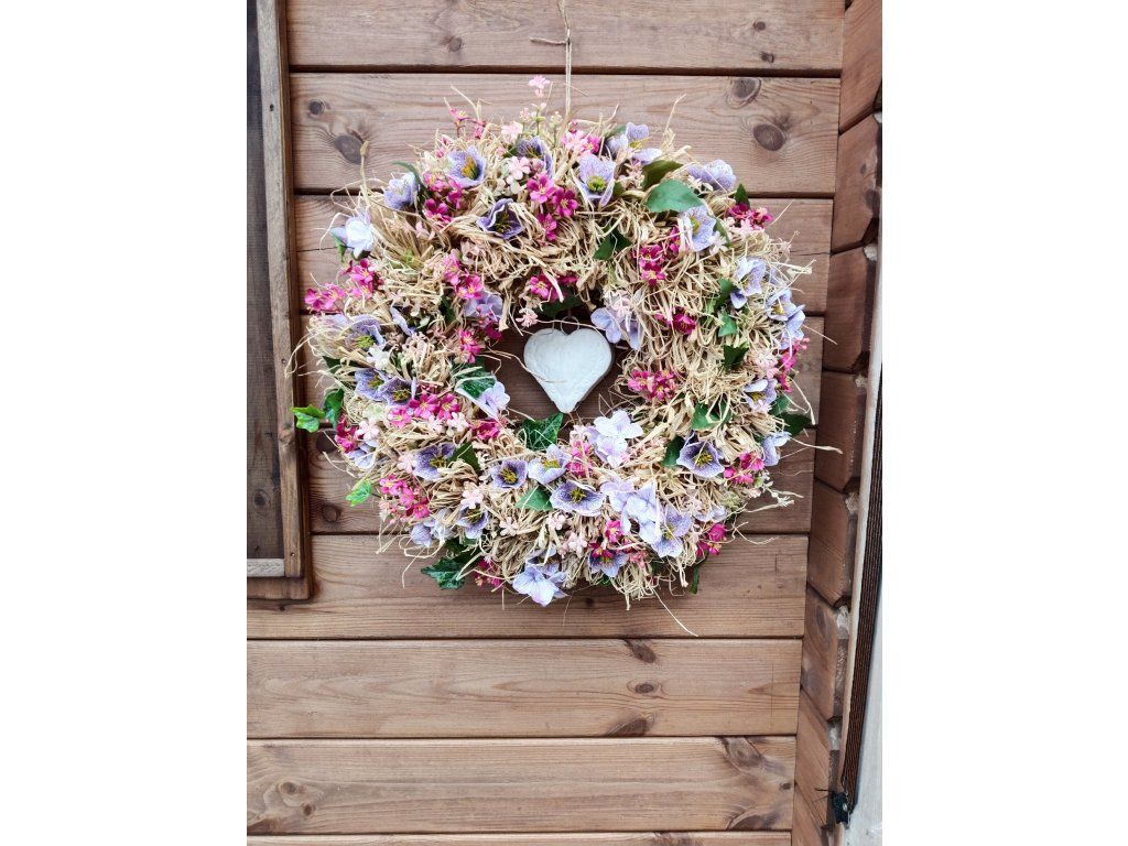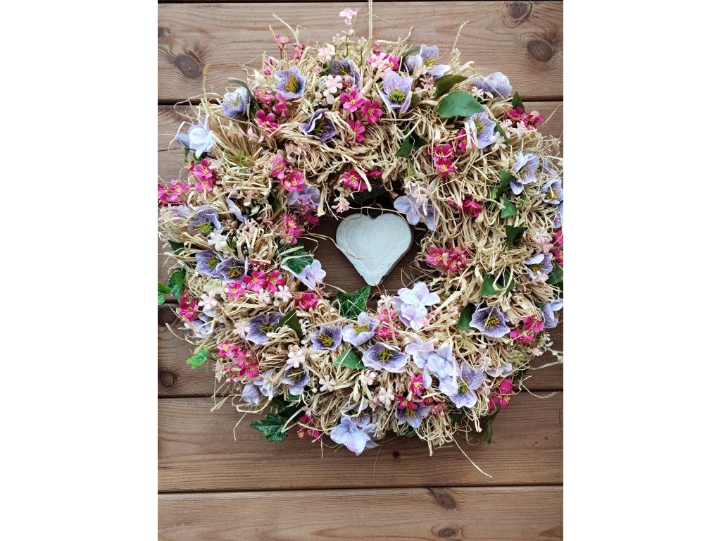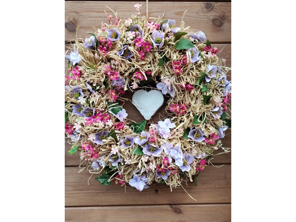 Celoroční věnec s kovovým srdcem, průměr cca 45 cm