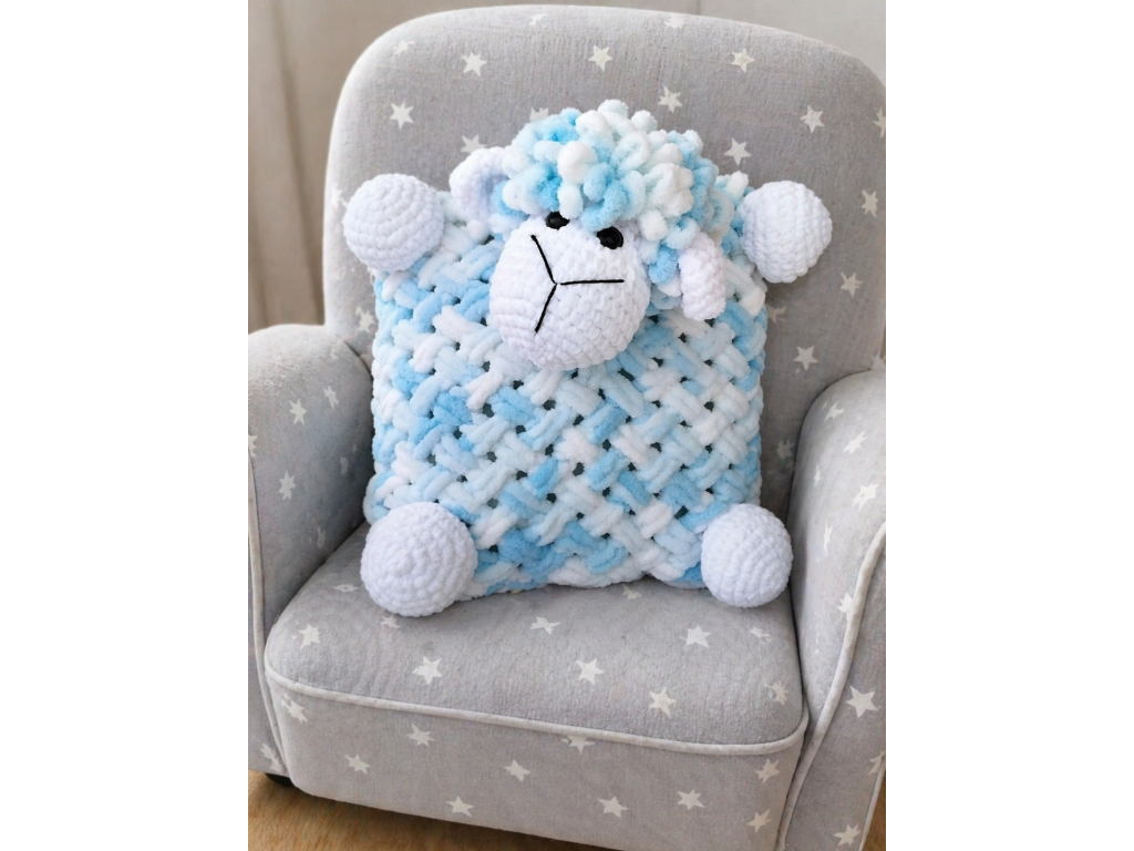 Háčkovaná ovečka,, Toník,, polštář 40x40 cm