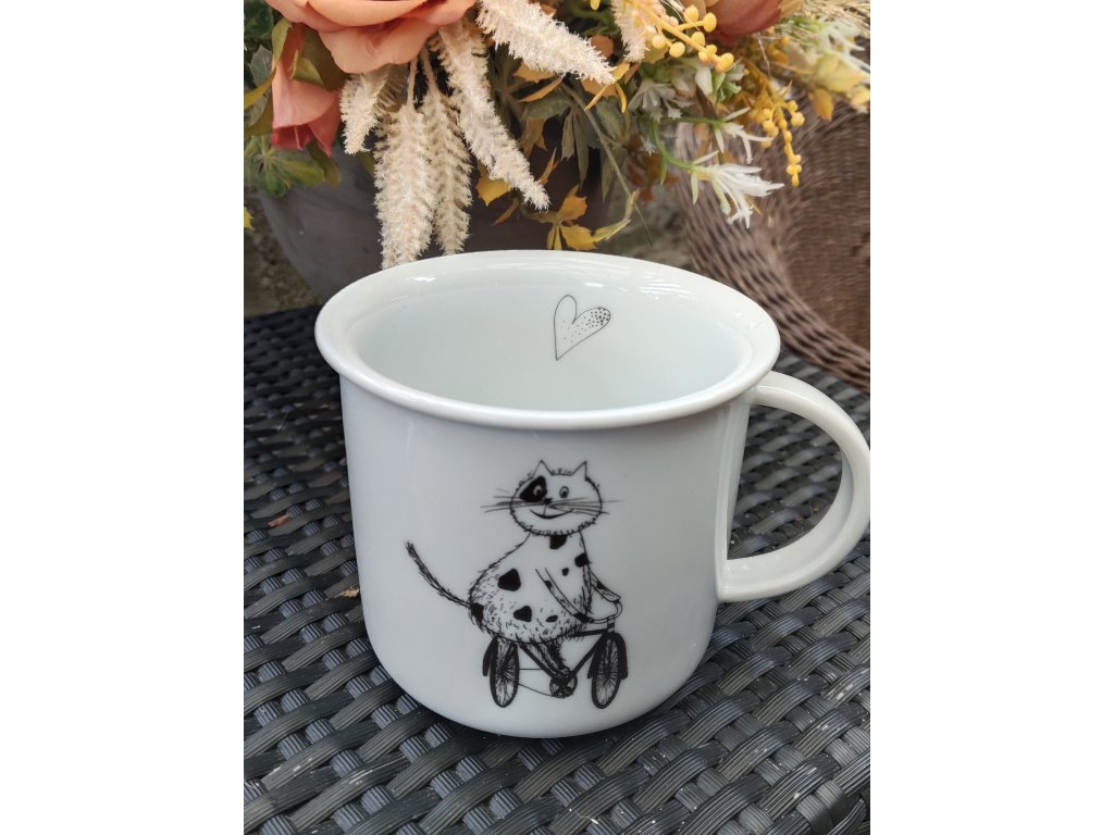 Porcelánový hrnek s motivem kočky, objem 450 ml