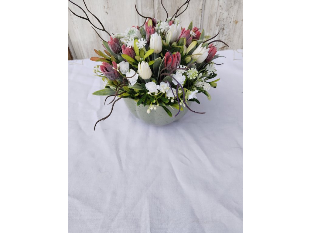 Květinové aranžmá v keramické misce, výška 16 cm, šířka 17 cm