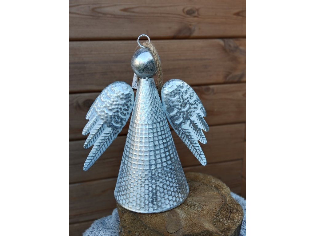 Kovová závěsná dekorace ve tvaru anděla ve stříbrné barvě bude nádhernou vánoční ozdobou. Jedná se o zvon, který je opatřen provázkem pro snadné zavěšení na místo určení. Díky takto zpracovanému andělovi si vytvoříte pohádkovou sváteční atmosféru s možností si přivolat Ježíška s dárky na štědrý večer, nebo si jen tak s radostí kdykoli zazvonit.