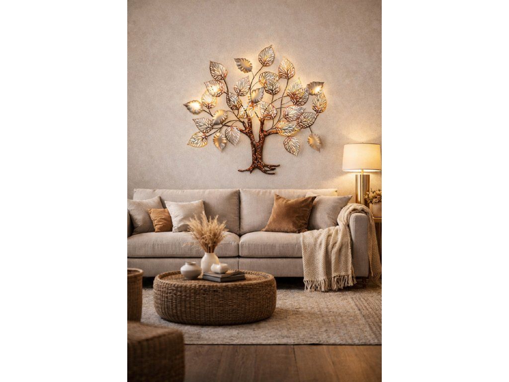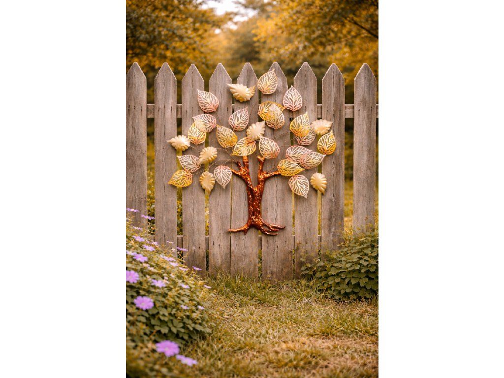 originality.Střídání stříbrných, žlutých a zelených odstínů lístků, vytváří výrazný působivý kontrast, který přitahují pozornost. Tento kovový strom se