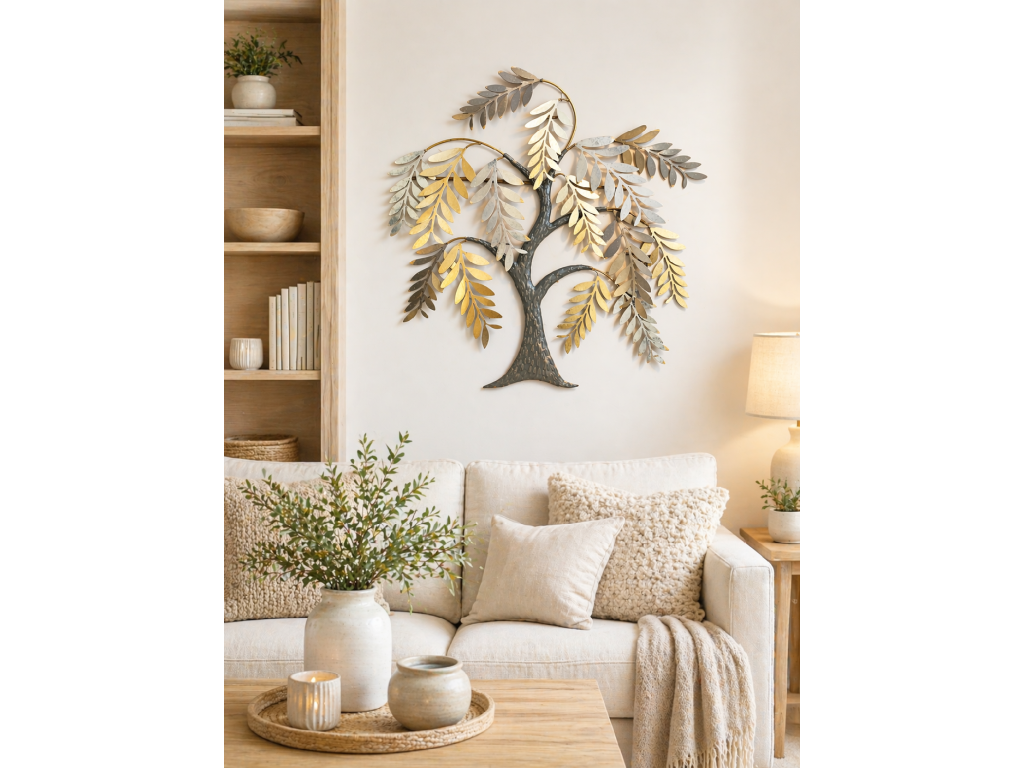 Kovová závěsná dekorace,, Strom ve zlatohnědém odstínu.