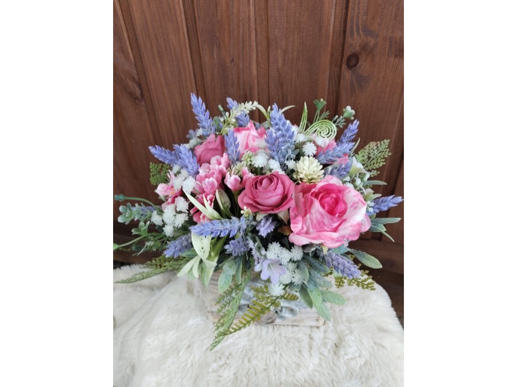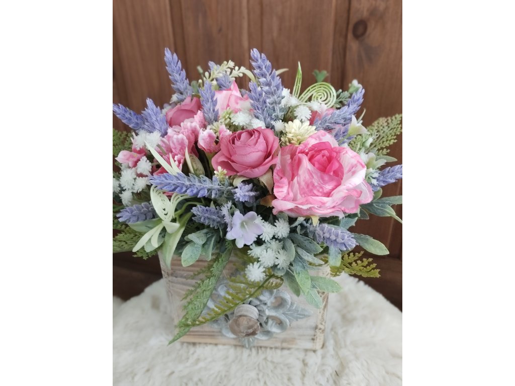 Květinové aranžmá,, Růže a levandule v šuplíku,,