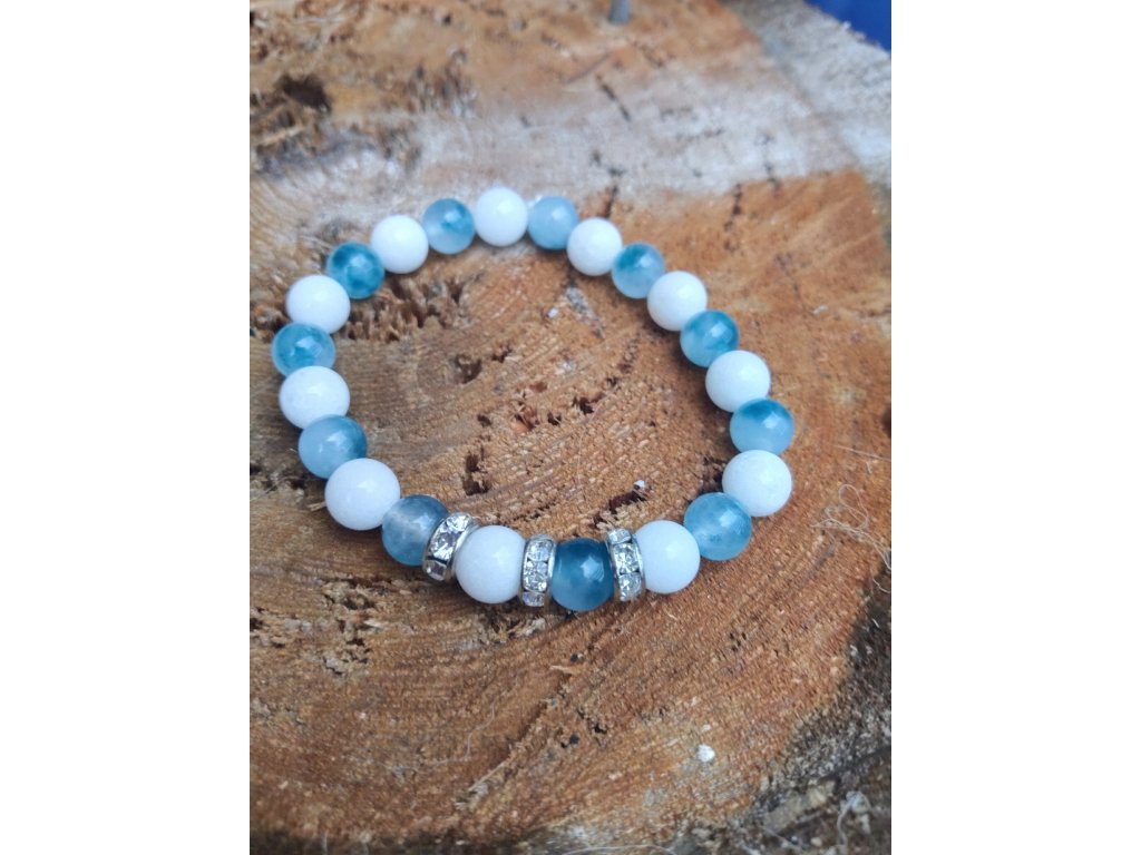 Originální ručně tvořený náramek z minerálů Chalcedon s rondelky