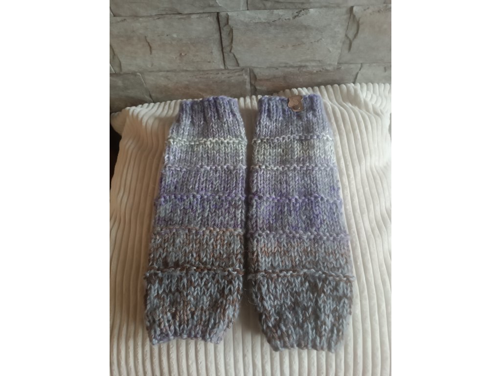 Ručně pletené návleky z dvojité velmi příjemné příze, která nekouše. Návleky jsou bezešvé. 100% akryl. Rozměr cca délka 38 cm, pružné, padnou na každou nožku. Prát ručně na 30°C, neždímat . mírně vymačkat a sušit rozložené.