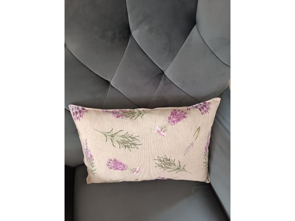 Polštářek je ušitý z pevnější zahraniční látky (180g/m2) , vyplněný dutým vláknem. Po obvodu je prošitý a drží pěkně tvar. Polštářek je oboustranný. Rozměr cca 49x34 cm. Složení 70%BA,30%PES,
