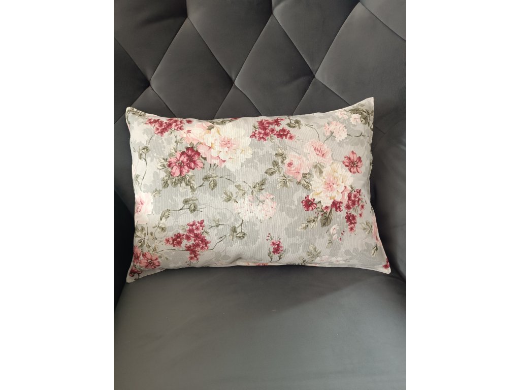Polštářek je ušitý z pevnější zahraniční látky (180g/m2), vyplněný dutým vláknem, po obvodu je prošitý a drží pěkně tvar. Polštářek je oboustranný. Rozměr cca 49x34cm, složení 70%BA,30%PES. Prát na 30°C, mírně ždímat a nesušit v sušičce.