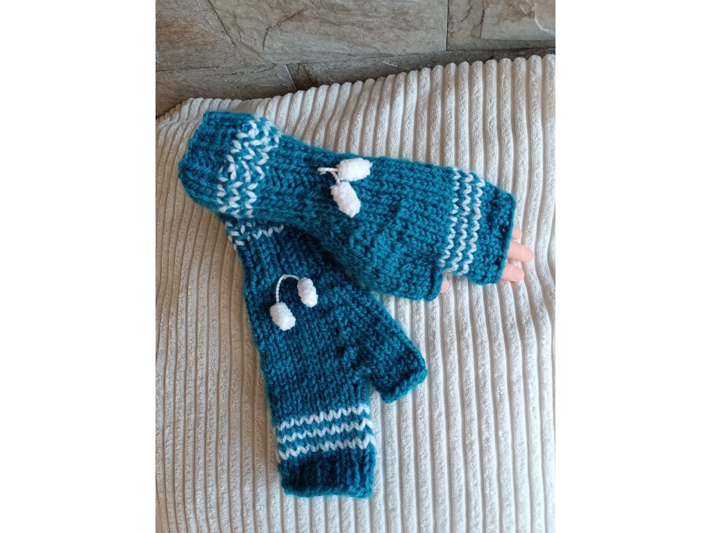 Ručně pletené bezprsté rukavice. Jsou bezešvé z velmi příjemné příze, která nekouše. Délka cca 23 cm. 100% akryl. Prát ručně na 30°C, neždímat a sušit rozložené.