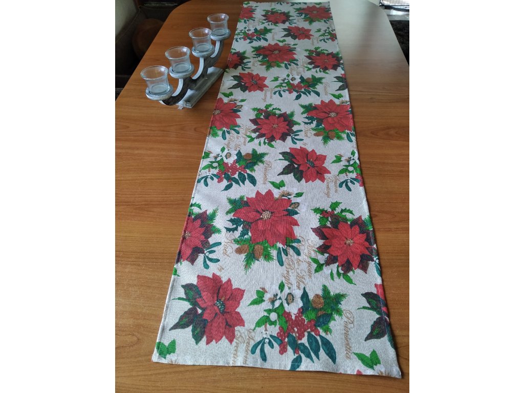 Vánoční běhoun ušitý ze zahraniční látky vyšší gramáže. Rozměr cca 37 x 136 cm. Prát na 30°C, nesušit v sušičce.