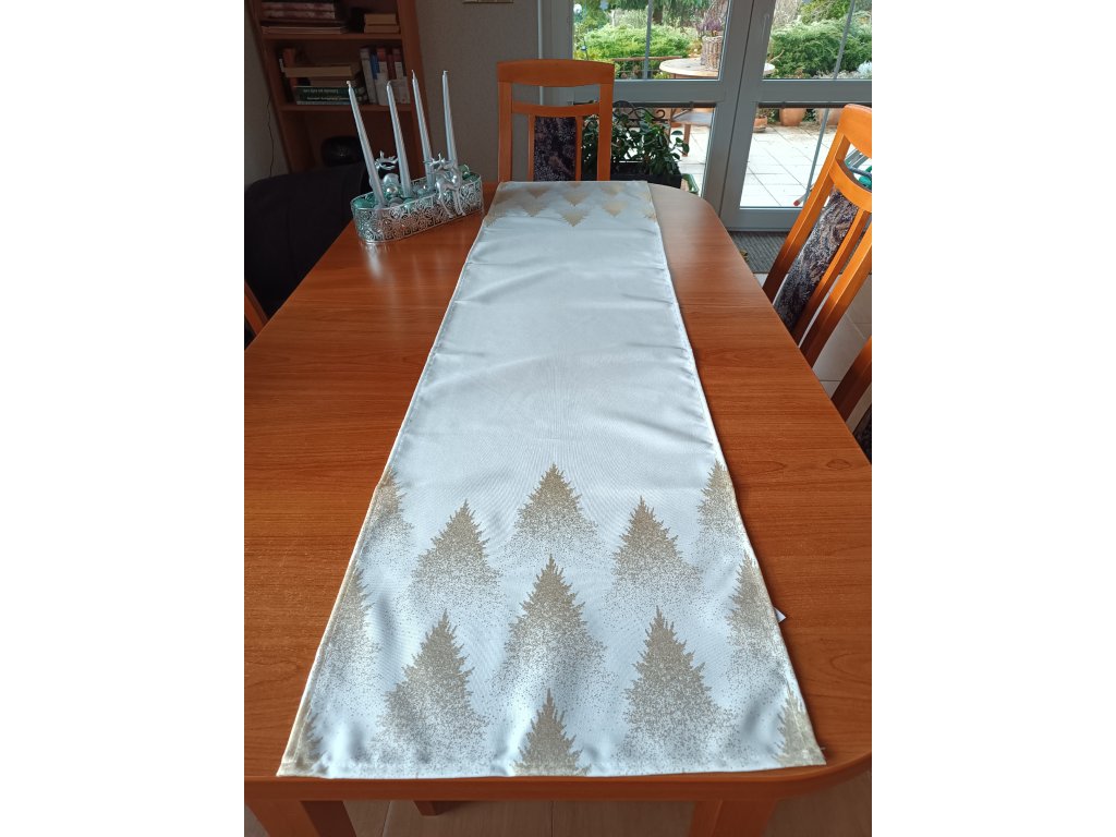 Běhoun s vánočním motivem zlaté stromky. 100% polyester. rozměr 40 x 150 cm.
