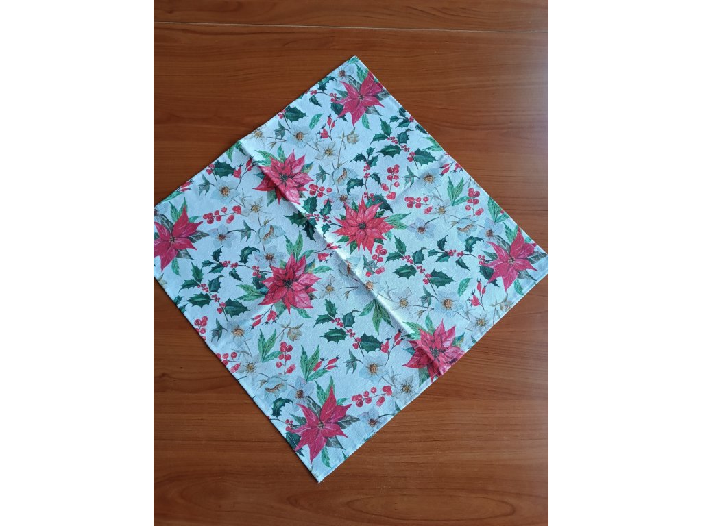 Vánoční dečka na stolek ušitá ze zahraniční látky vyšší gramáže. Rozměr cca 43 x 43 cm. složení 70%BA, 30%PES. Prát na 30°C, nesušit v sušičce.