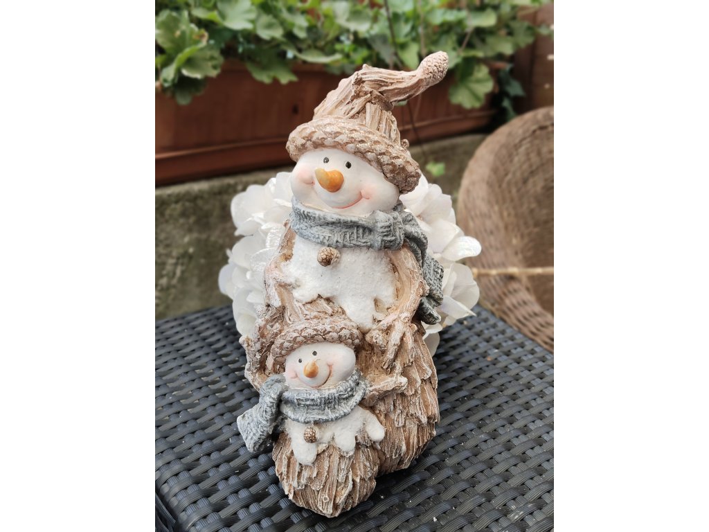 Postavička sněhuláka je skvělou dekorací pro milovníky zimy a zimních radovánek, které máme spojené i s vánočními svátky. Zavzpomínejte na časy, kdy jste si jej sami stavěli a měli potěšení z jeho originálního vzhledu, vytvořeného vlastníma rukama. Tento fešák z polyresinu s mrňouskem má obrovskou výhodu v tom, že vám nikdy neroztaje, a bude veselým a trvalým parťákem pro váš oblíbený prostor. Nechť je jeho dobrá nálada příčinou příjemné a radostné atmosféry u vás doma a činí potěšení vám i vašim návštěvníkům.