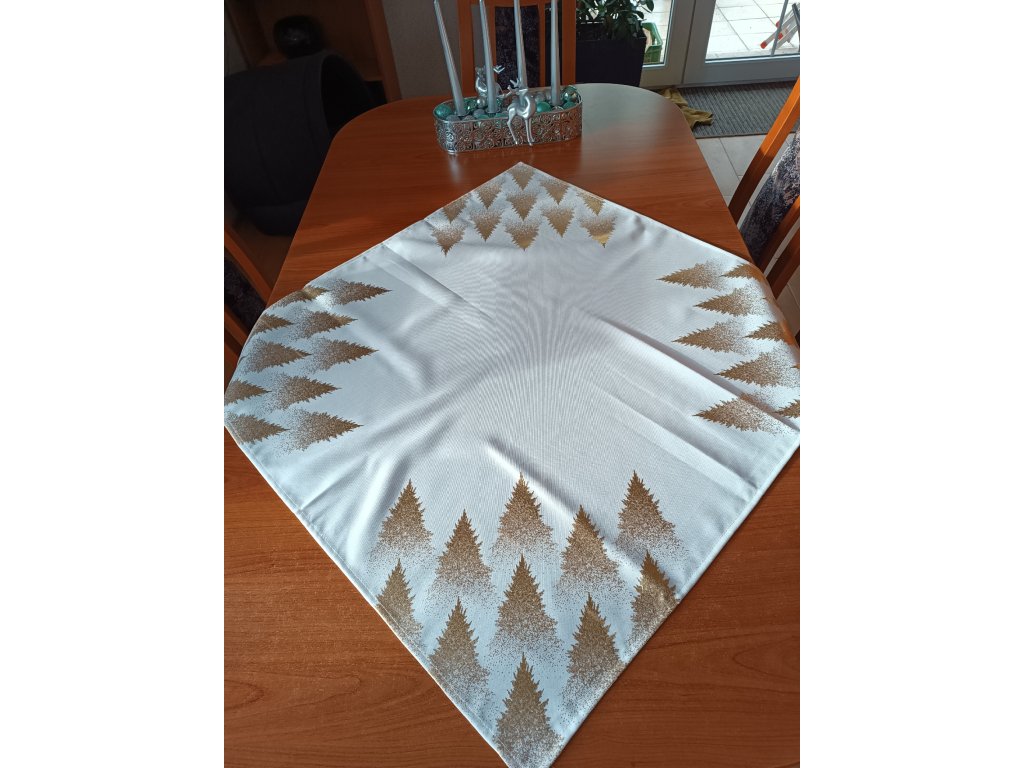 Ubrus s vánočním motivem zlaté stromečky. 100% polyester. Rozměr 80 x 80 cm.