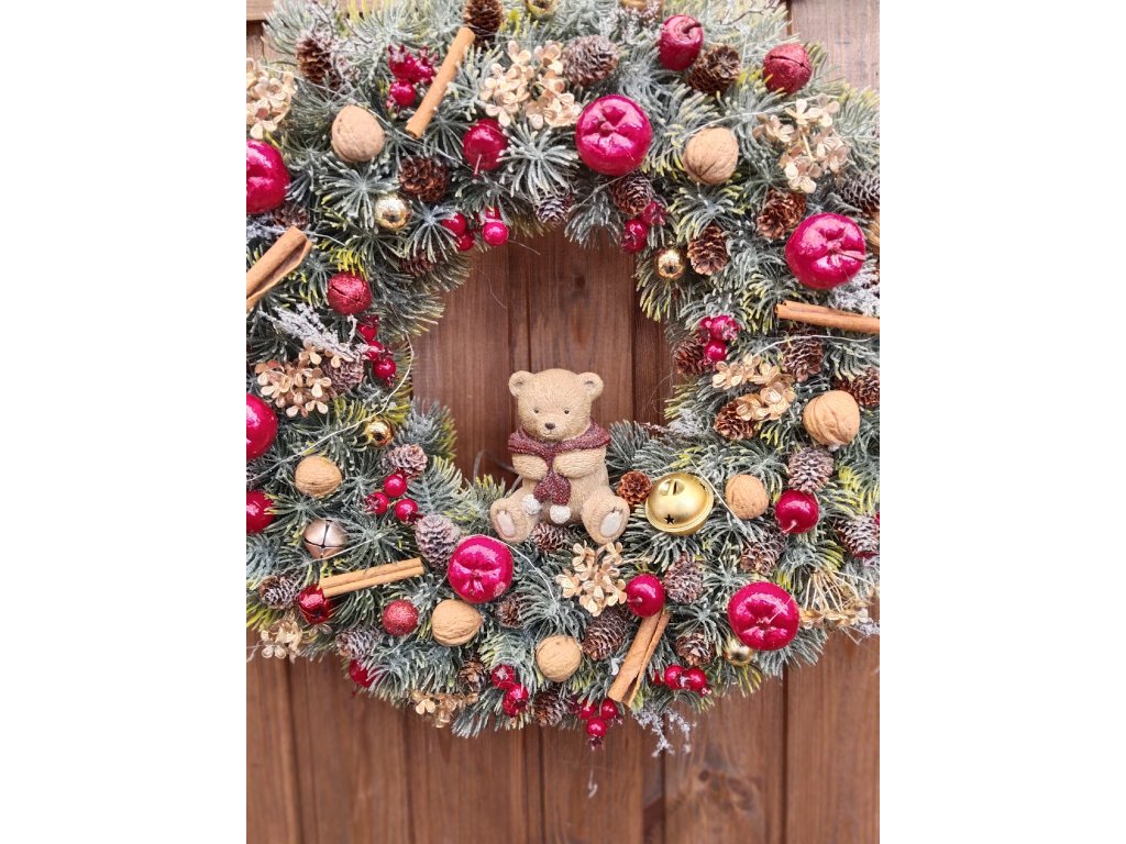 Vánoční věnec s medvídkem