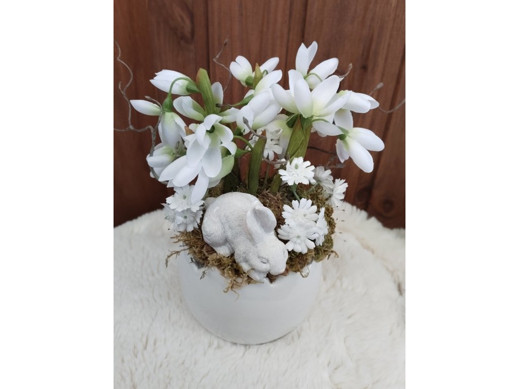 Aranžmá v keramickém obalu ve tvaru skořápky, výška cca 18 cm