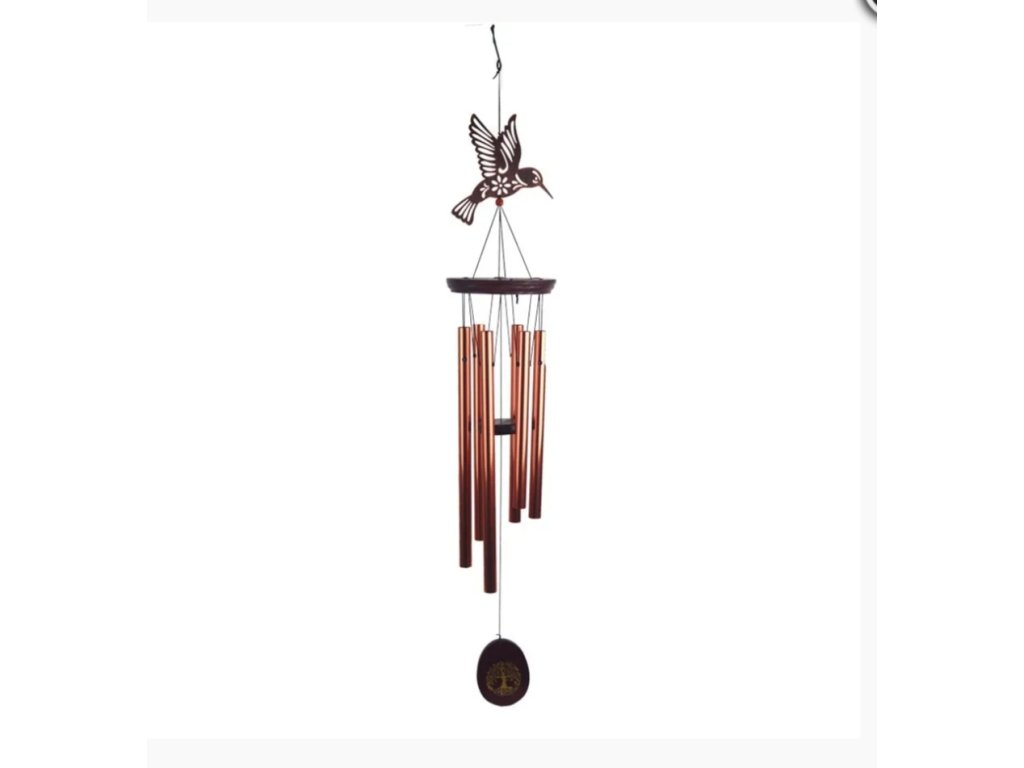 Krásná zvonkohra s ptáčkem, měděná barva, materiál kov a dřevo