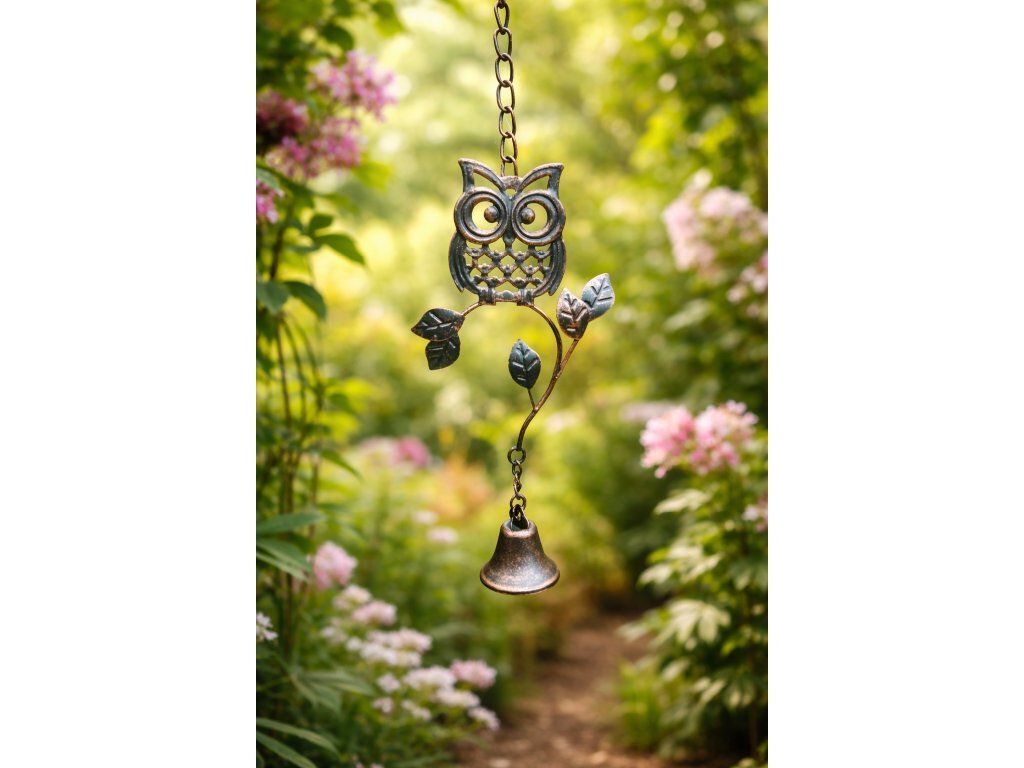 Kovová závěsná zvonkohra Sovička, délka cca 39 cm.